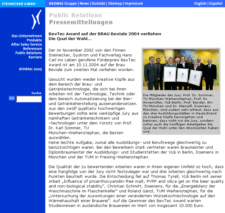 Brau Beviale Preisverleihung BevTec Award, Nürnberg, 2002